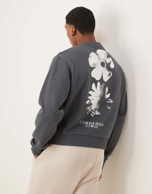 ASOS DESIGN - Oversized sweatshirt met bloemenprint in antracietgrijs