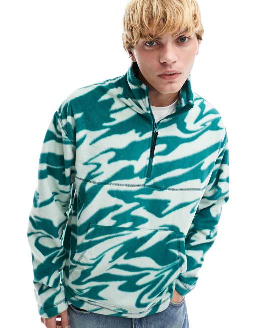 ASOS DESIGN - Oversized sweatshirt met halve drukknoopsluiting van polarfleece in marmerprint