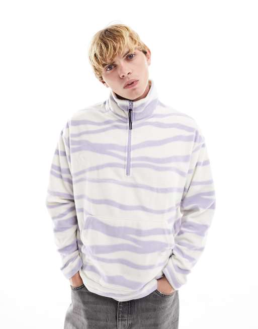 ASOS DESIGN - Oversized sweatshirt met halve drukknoopsluiting van polarfleece in print