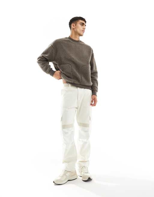 ASOS DESIGN - Oversized sweatshirt met zakdetail in bruin borg