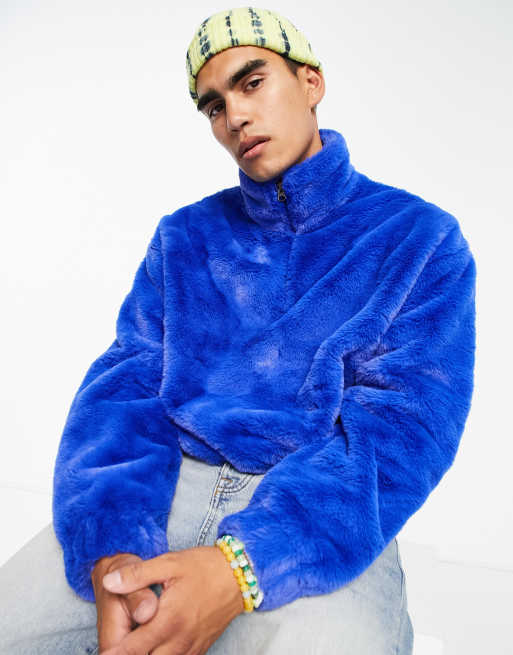 ASOS DESIGN - Oversized sweatshirt van imitatiebont met korte rits in blauw