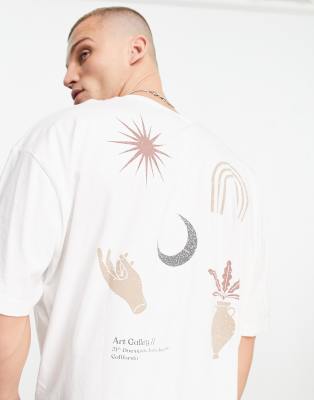ASOS DESIGN - Oversized T-shirt in ecru met Art Gallery-print op de achterkant