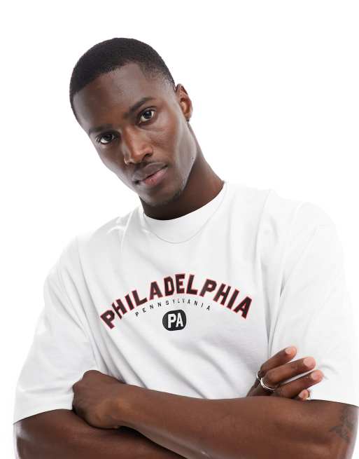 ASOS DESIGN - Oversized T-shirt in wit met 'Philadelphia' print op de borst