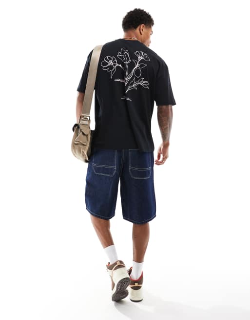 ASOS DESIGN - Oversized T-shirt in zwart met bloemenprint op de achterkant