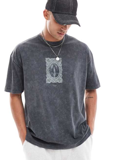 ASOS DESIGN - Oversized T-shirt in zwart met gothic-print op de borst
