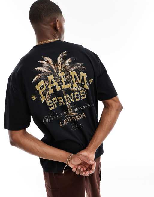 ASOS DESIGN - Oversized T-shirt in zwart met 'Palm Springs' print op de achterkant