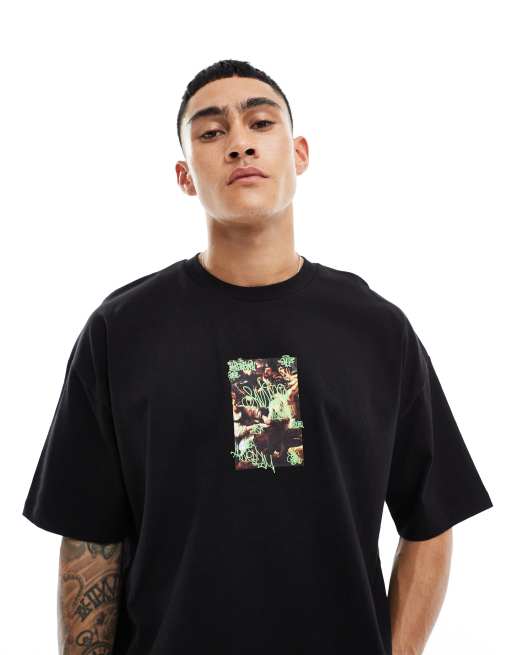 ASOS DESIGN - Oversized T-shirt in zwart met renaissance graffitiprint op de borst