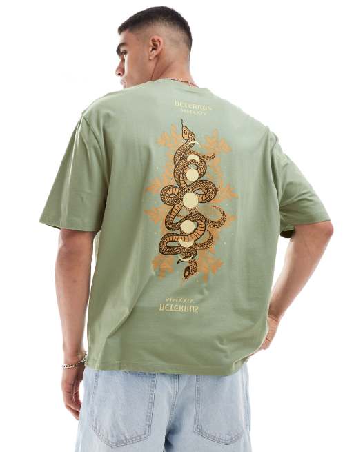 ASOS DESIGN - Oversized T-shirt met astrologische slangenprint op de achterkant in grijs