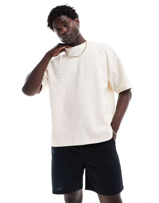 ASOS DESIGN - Oversized T-shirt met bouclé-textuur in ecru