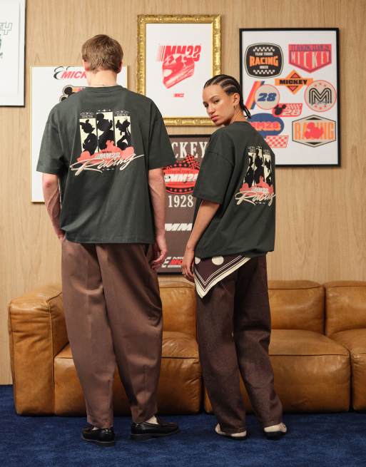 ASOS DESIGN - Oversized T-shirt met Disney Racing Mickey-print in donkergroen