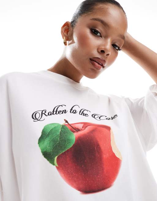 ASOS DESIGN - Oversized T-shirt met grafische appelprint in wit