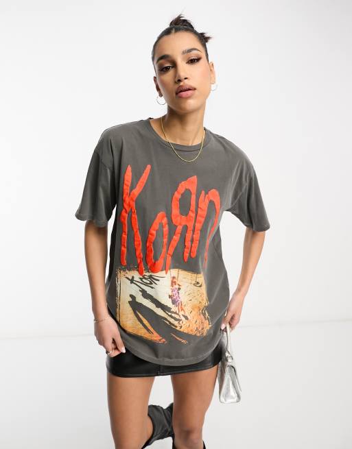 ASOS DESIGN - Oversized T-shirt met grafische gelicenseerde Korn-print in antraciet met wassing