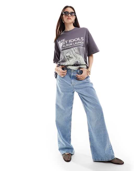 ASOS DESIGN - Oversized T-shirt met grafische Lost Idols-bandprint in antraciet met wassing