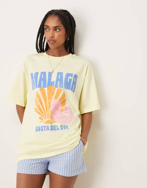ASOS DESIGN - Oversized T-shirt met grafische Malaga-print in citroengeel