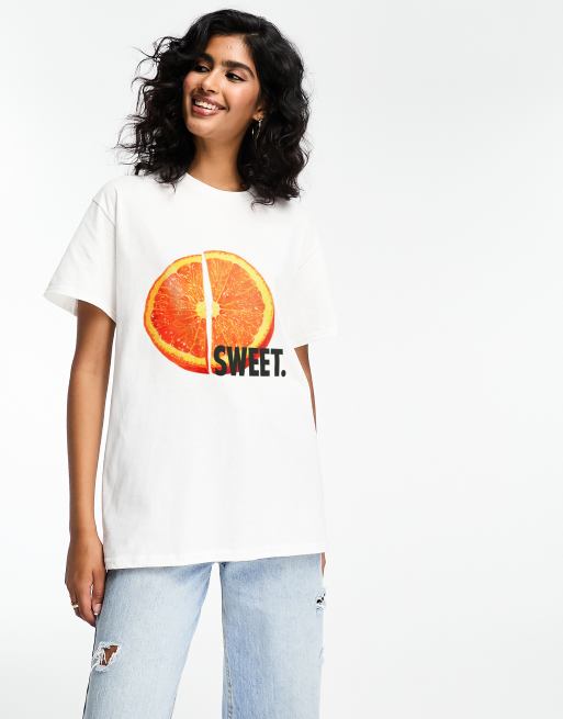 ASOS DESIGN - Oversized T-shirt met grafische sinaasappelprint in wit