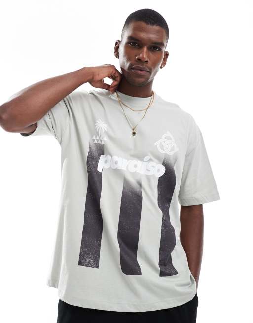ASOS DESIGN - Oversized T-shirt met grafische sportprint en strepen in lichtgrijs