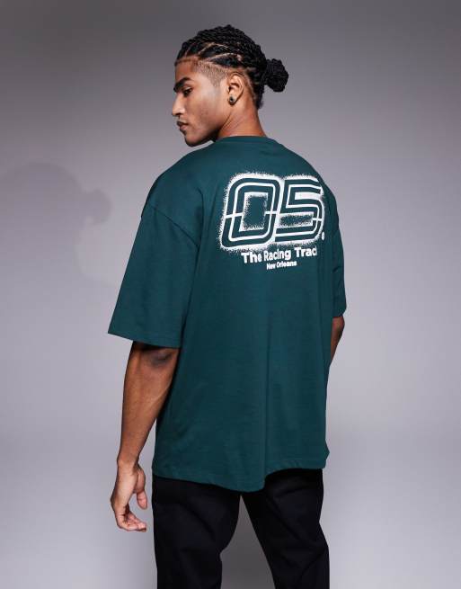 ASOS DESIGN - Oversized T-shirt met grafische sportprint in donkergroen