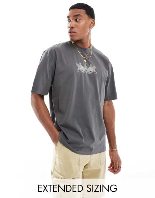 ASOS DESIGN - Oversized T-shirt met grunge print op de borst in antraciet