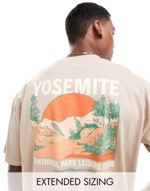 ASOS DESIGN - Oversized T-shirt met landschapsprint op de achterkant in beige