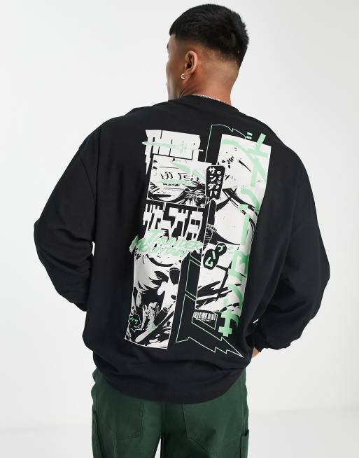 ASOS DESIGN - Oversized T-shirt met lange mouwen en anime print op de rug in zwart