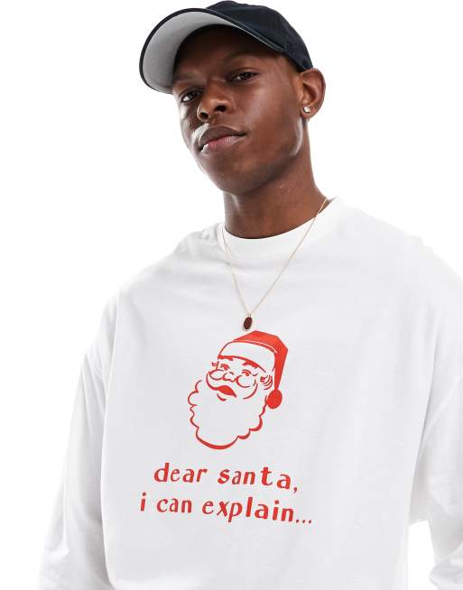 ASOS DESIGN - Oversized T-shirt met lange mouwen en grafische kerstprint in wit