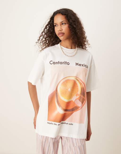 ASOS DESIGN - Oversized T-shirt met Mexico cocktailprint in crème