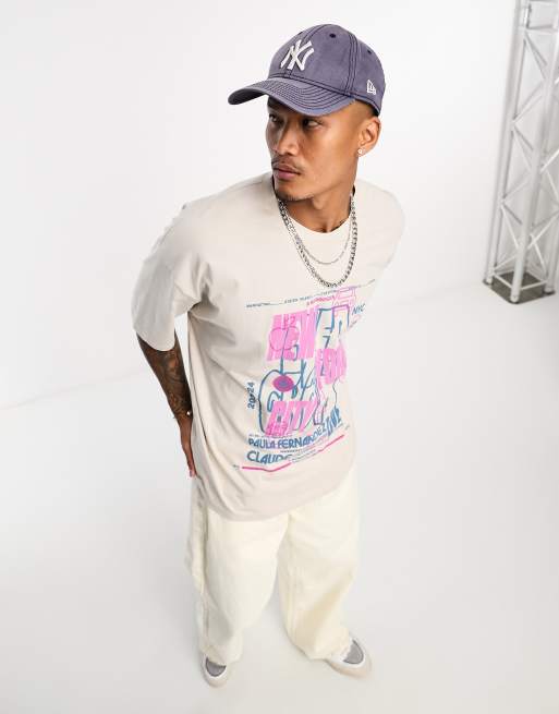 ASOS DESIGN - Oversized T-shirt met NYC-print op voorkant in beige