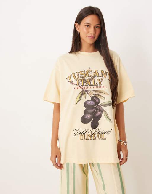 ASOS DESIGN - Oversized T-shirt met olijftakprint in lichtgeel