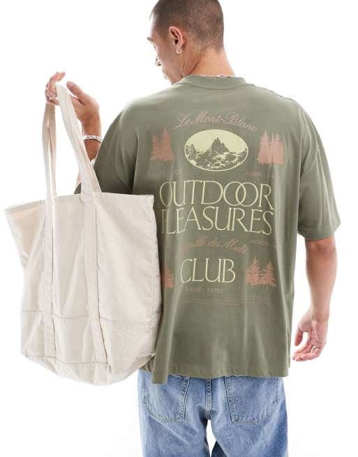 ASOS DESIGN - Oversized T-shirt met outdoor print op de achterkant in olijfgroen