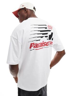 ASOS DESIGN - Oversized T-shirt met Paraiso-print op de achterkant in wit