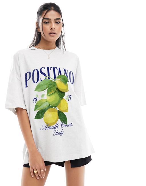 ASOS DESIGN - Oversized T-shirt met Positano Italy citroenprint in gemêleerd wit
