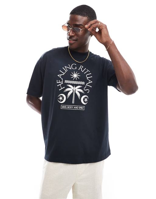 ASOS DESIGN - Oversized T-shirt met print aan de voorkant in zwart