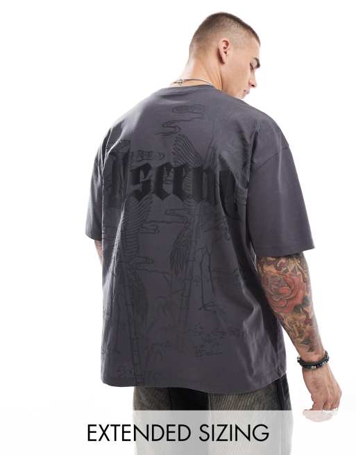 ASOS DESIGN - Oversized T-shirt met print op de achterkant in antraciet
