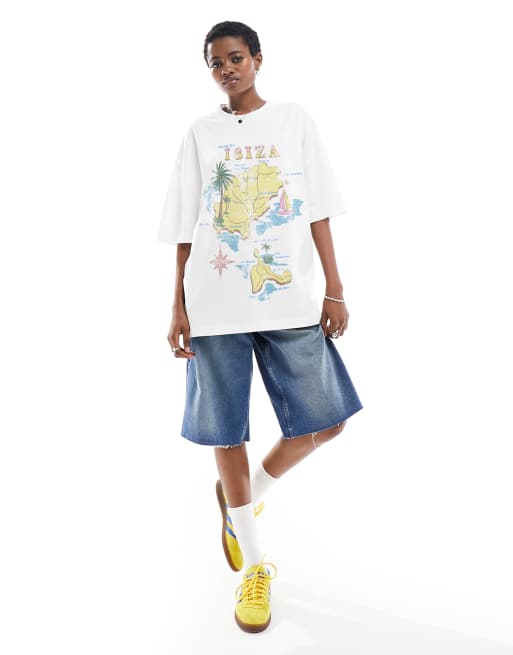 ASOS DESIGN - Oversized T-shirt met print van kaart van Ibiza in wit