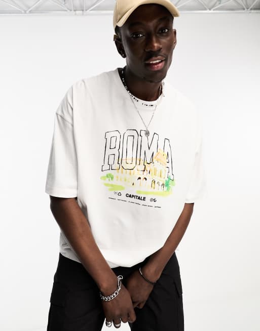 ASOS DESIGN - Oversized T-shirt met Rome-print op de voorkant in wit