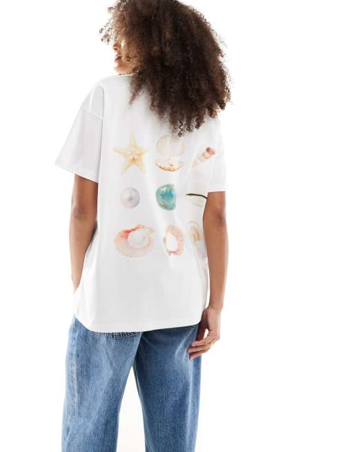 ASOS DESIGN - Oversized T-shirt met schelpenprint in ivoorwit
