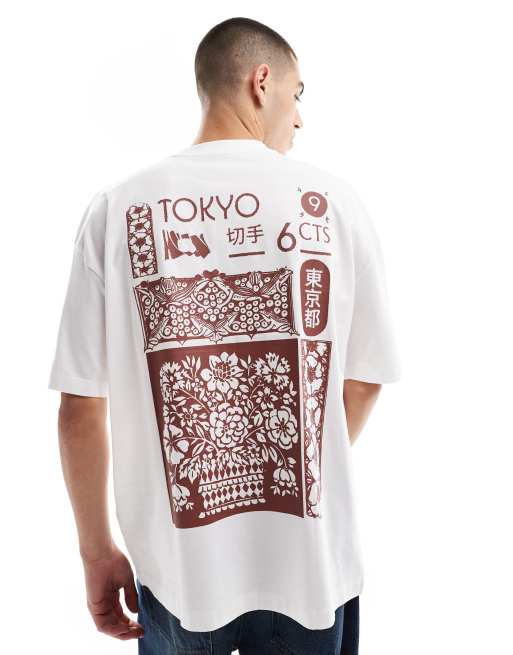 ASOS DESIGN - Oversized T-shirt met souvenirprint op de achterkant in wit