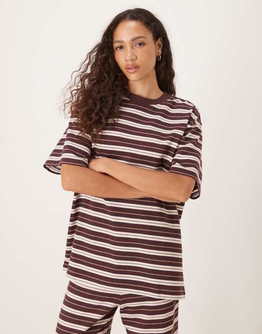 ASOS DESIGN - Oversized T-shirt met strepen in chocoladebruin
