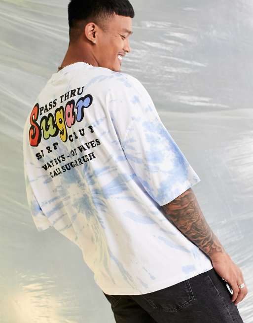 ASOS DESIGN - Oversized T-shirt met tie-dye en print op de rug in lichtblauw