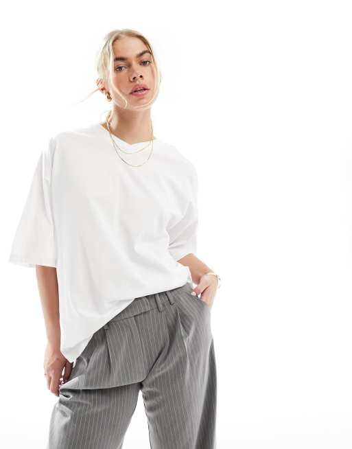 ASOS DESIGN - Oversized T-shirt met V-hals in wit