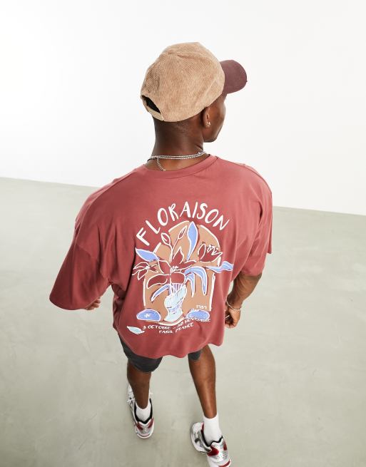 ASOS DESIGN - Oversized T-shirt met vaasprint op de achterkant in lichtrood