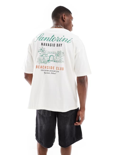 ASOS DESIGN - Oversized T-shirt met zomerse print in gebroken wit