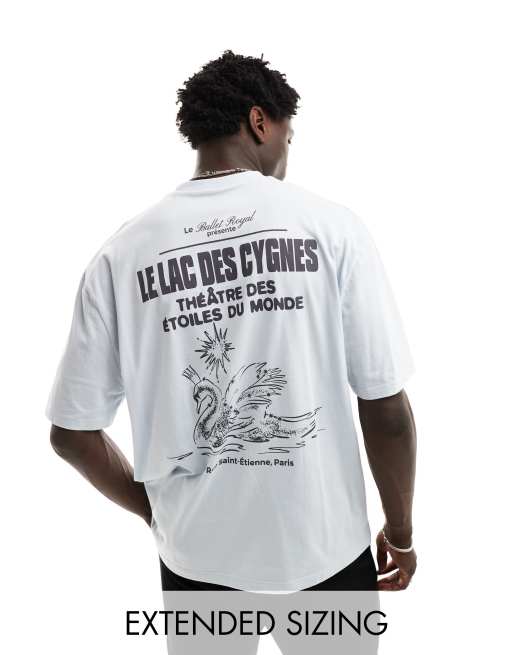ASOS DESIGN - Oversized T-shirt met zwaanprint op de achterkant in blauw