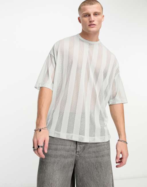 ASOS DESIGN - Oversized T-shirt van gestreept mesh in pastelgroen