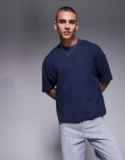 ASOS DESIGN - Oversized T-shirt van linnenmix met verlaagde schouders in marineblauw
