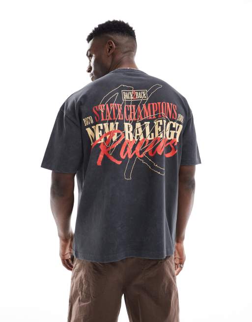 ASOS DESIGN - Oversized T-shirt van zware stof met sportprint in zwart met wassing