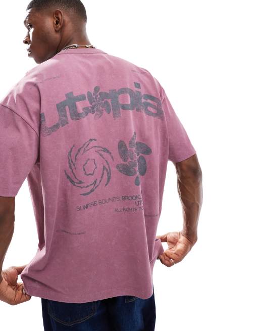 ASOS DESIGN - Oversized T-shirt van zware stof met streetprint in roze met wassing