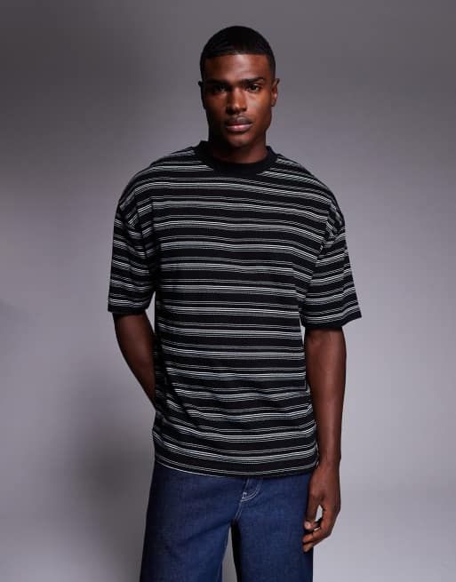 ASOS DESIGN - Oversized T-shirt van zware stof met textuur en strepen in zwart