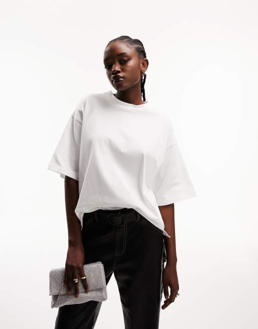 ASOS DESIGN - Oversized t-shirt van zware stof met zijsplitten in wit