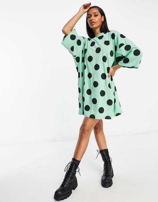 ASOS DESIGN - Oversized T-shirtjurk in groen met grote zwarte stippen